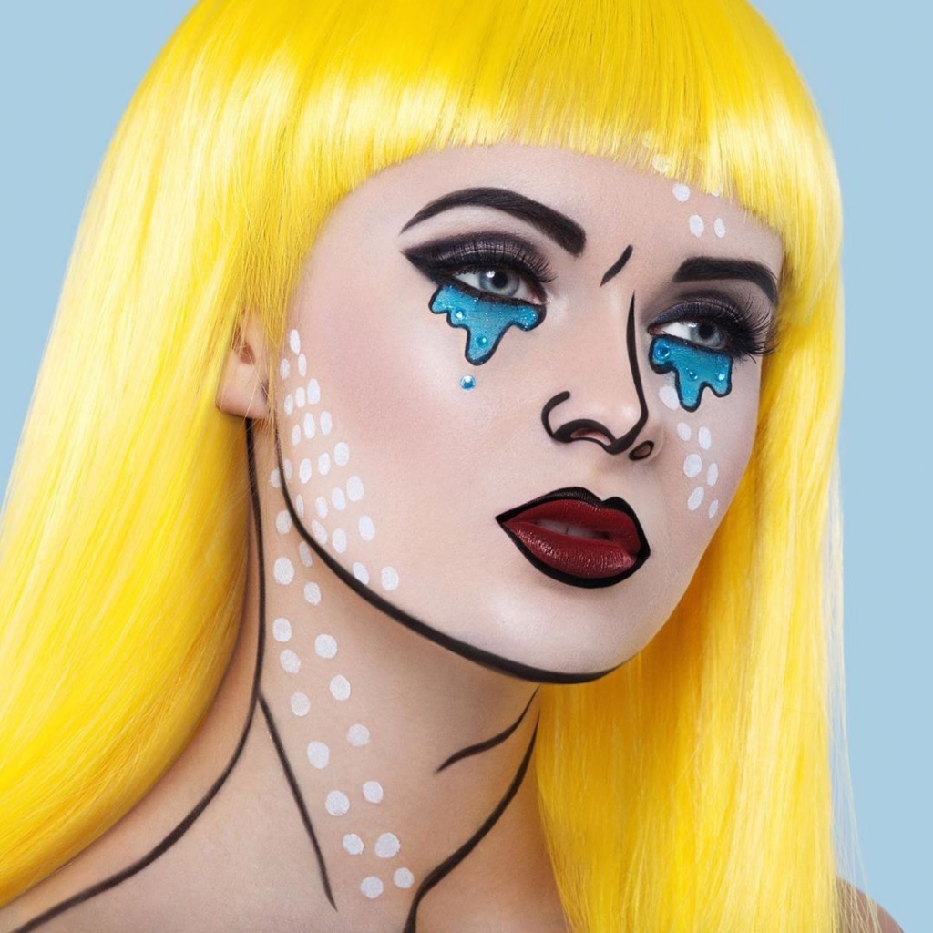 Источник: @miss__adelina._ Этот макияж напоминает настоящее произведение искусства, как будто сошел с полотен Роя Лихтенштейна или Фрэнка Миллера. Главный принцип такого мейкапа – четкие линии и яркие краски. Средства
